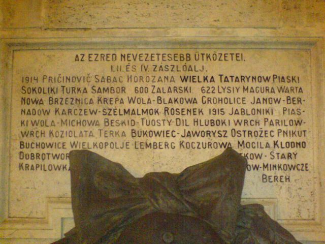 meg a szobor alatt az ezred naplóját, a csata leírását a 3600 névből álló